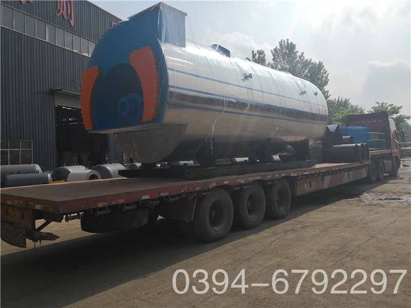 WNS系列蒸汽锅炉是锅壳式、波形炉胆、螺纹烟管型节能锅炉,采用三回程湿背式结构,燃料在炉胆内燃烧产生高温烟气,经回燃室→对流管束→前烟箱→第二对流管束→后烟箱→常压冷凝器→烟囱排入大气。炉胆在设计中采用波形炉胆,能较好的与火焰形状相适应,保证了燃烧充分,波形炉胆降低了炉胆刚性,减小了变形应力,可保证制造质量。同时在回燃室安装了检查孔或弹簧式防爆检查门,本体上设置的人孔有利于锅炉的安全运行及维修。锅炉安全控制严格按照NB/T47034-2013《工业锅炉技术条件》和有关规程规定执行。