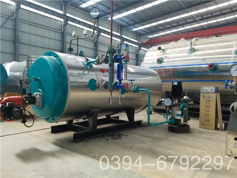 WNS系列蒸汽锅炉是锅壳式、波形炉胆、螺纹烟管型节能锅炉,采用三回程湿背式结构,燃料在炉胆内燃烧产生高温烟气,经回燃室→对流管束→前烟箱→第二对流管束→后烟箱→常压冷凝器→烟囱排入大气。炉胆在设计中采用波形炉胆,能较好的与火焰形状相适应,保证了燃烧充分,波形炉胆降低了炉胆刚性,减小了变形应力,可保证制造质量。同时在回燃室安装了检查孔或弹簧式防爆检查门,本体上设置的人孔有利于锅炉的安全运行及维修。锅炉安全控制严格按照NB/T47034-2013《工业锅炉技术条件》和有关规程规定执行。